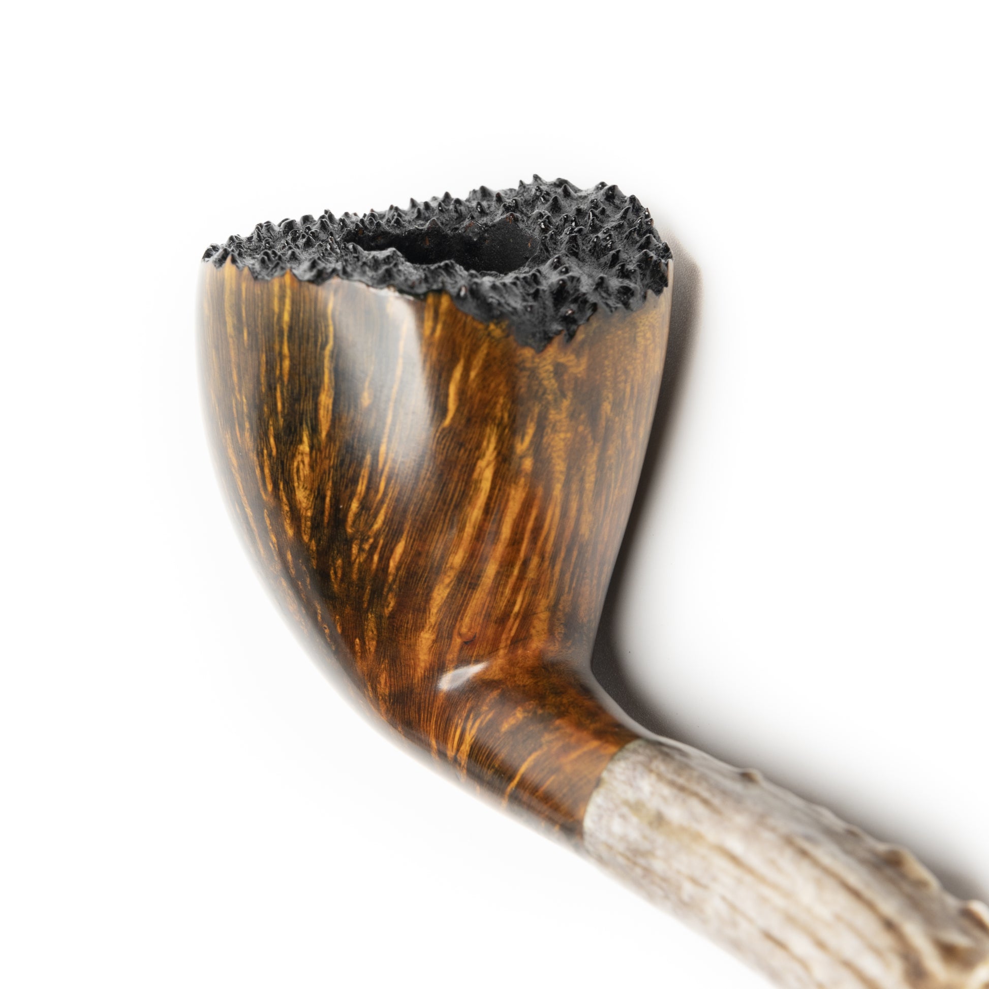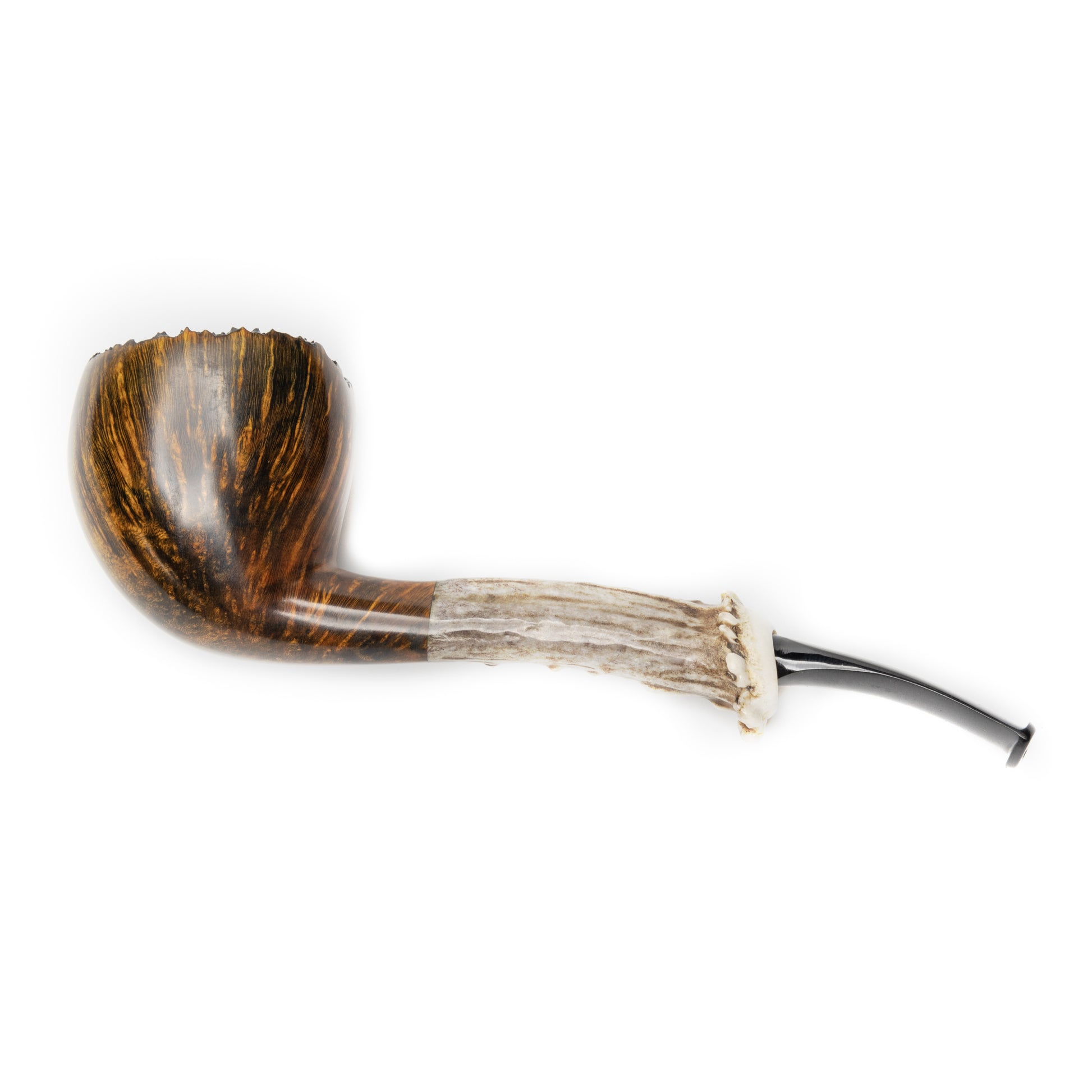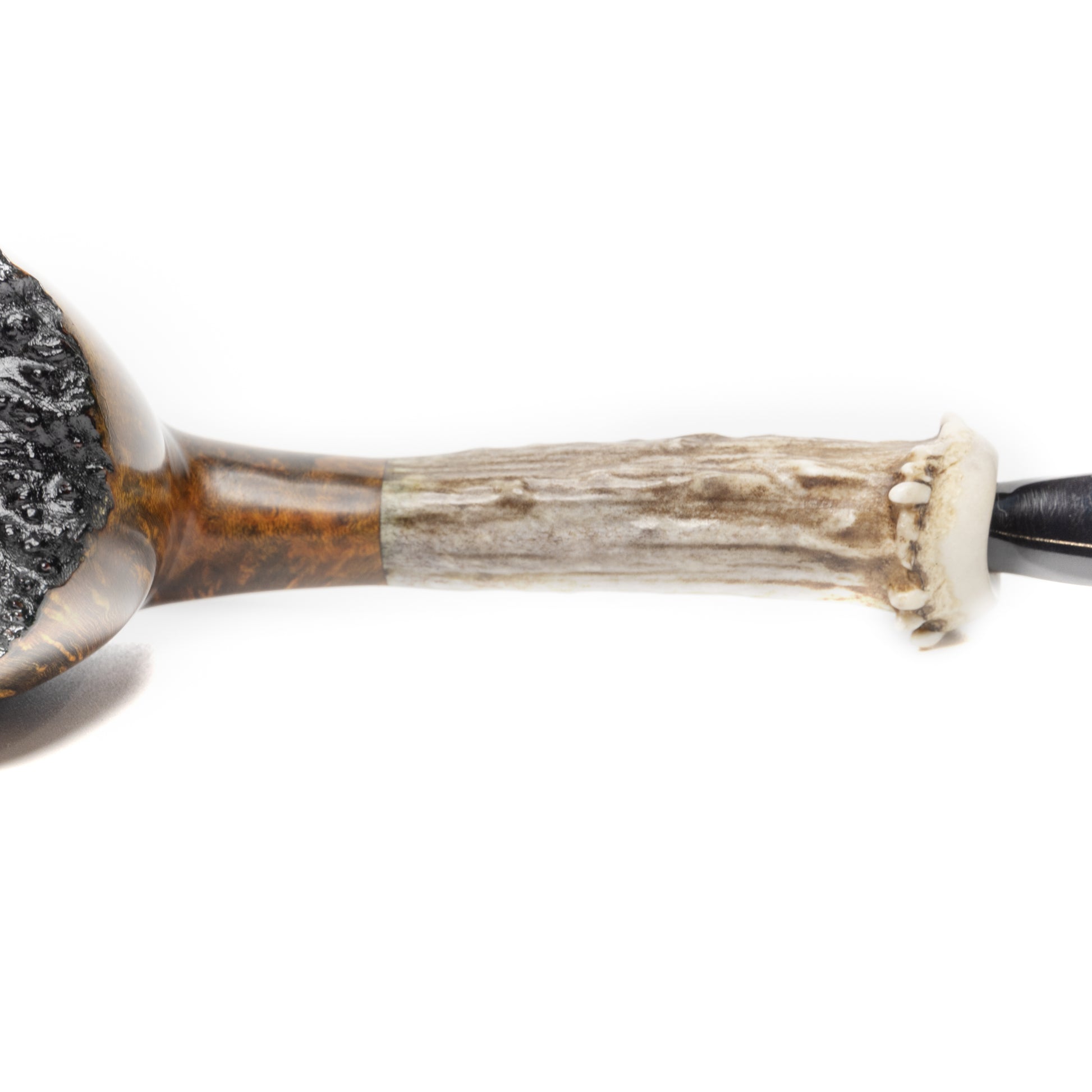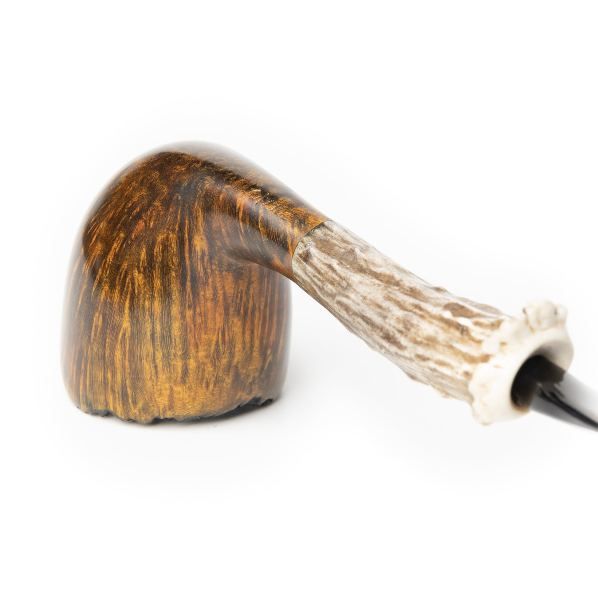 This is a wonderful acorn-ish shape with a deer antler shank. The grain on this pipe is also excellent with a nice contrast stain.