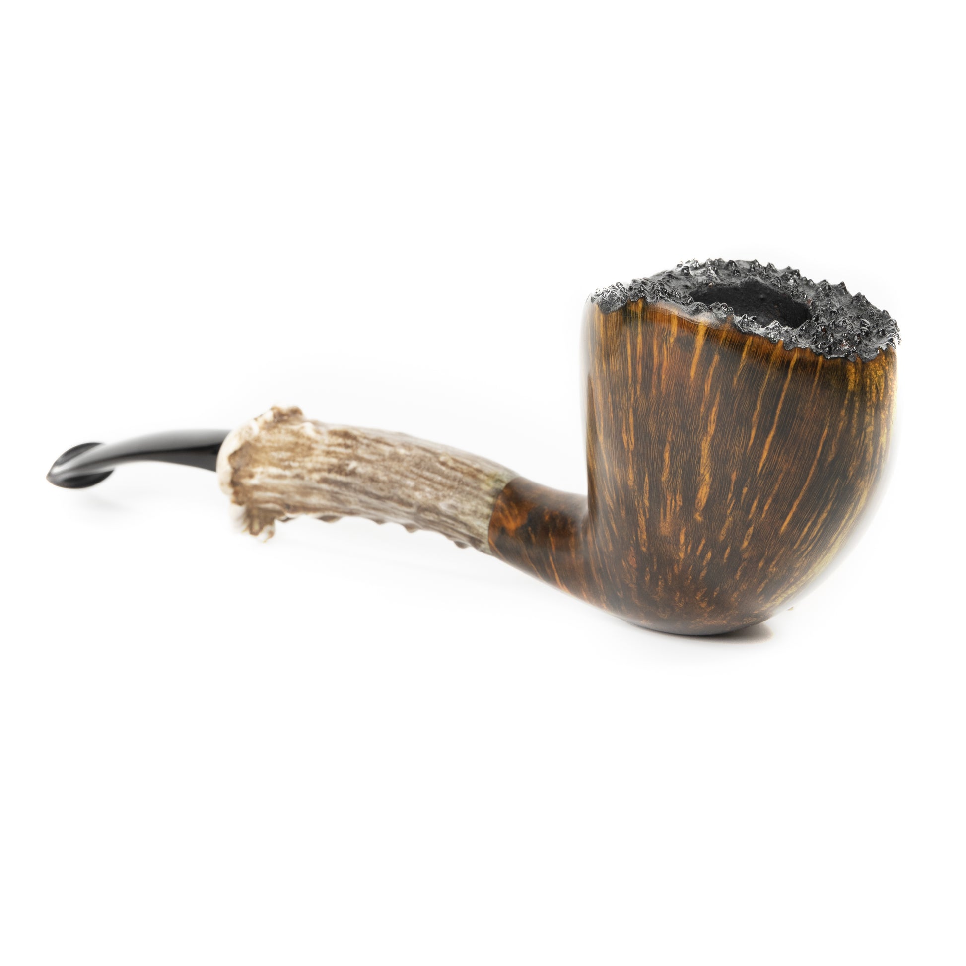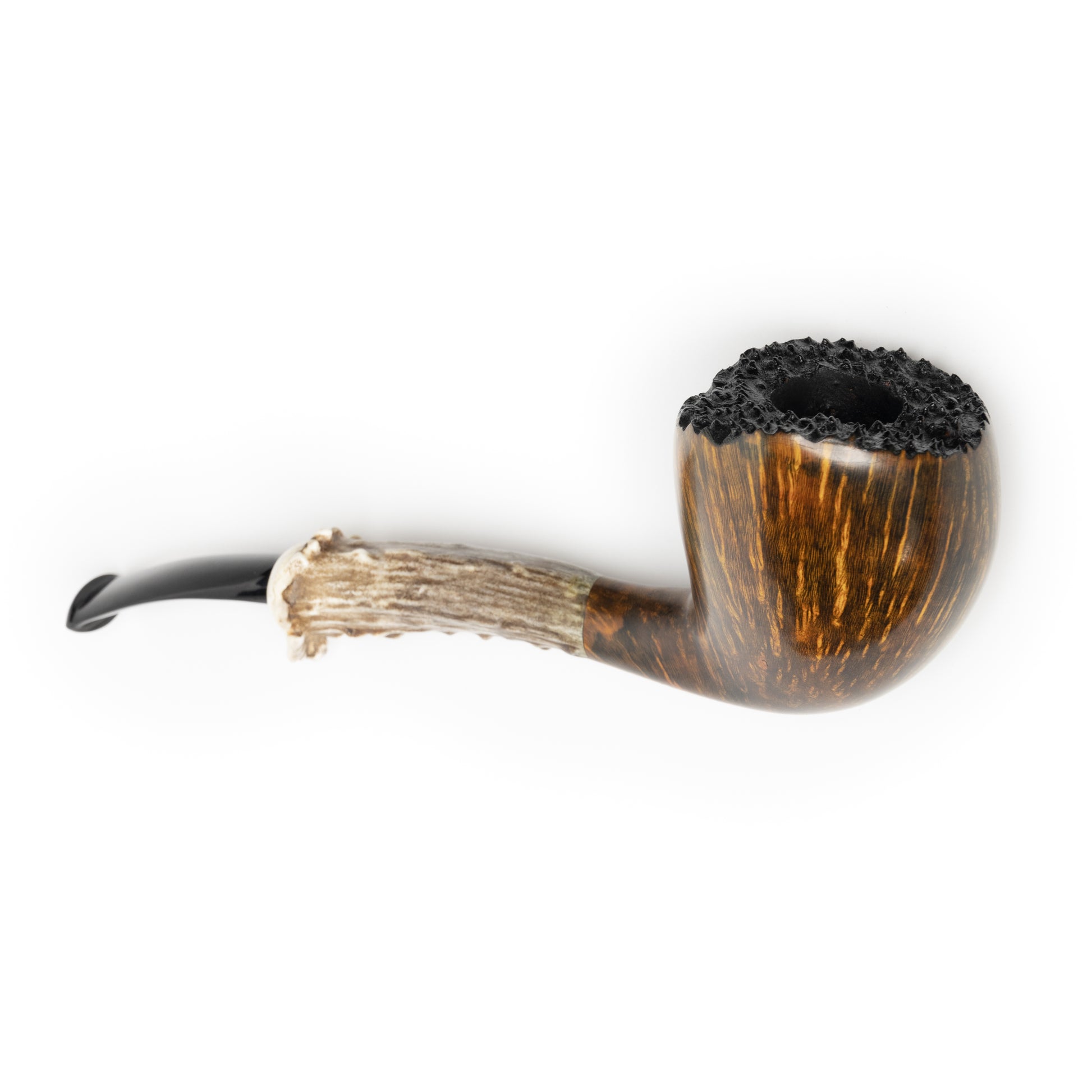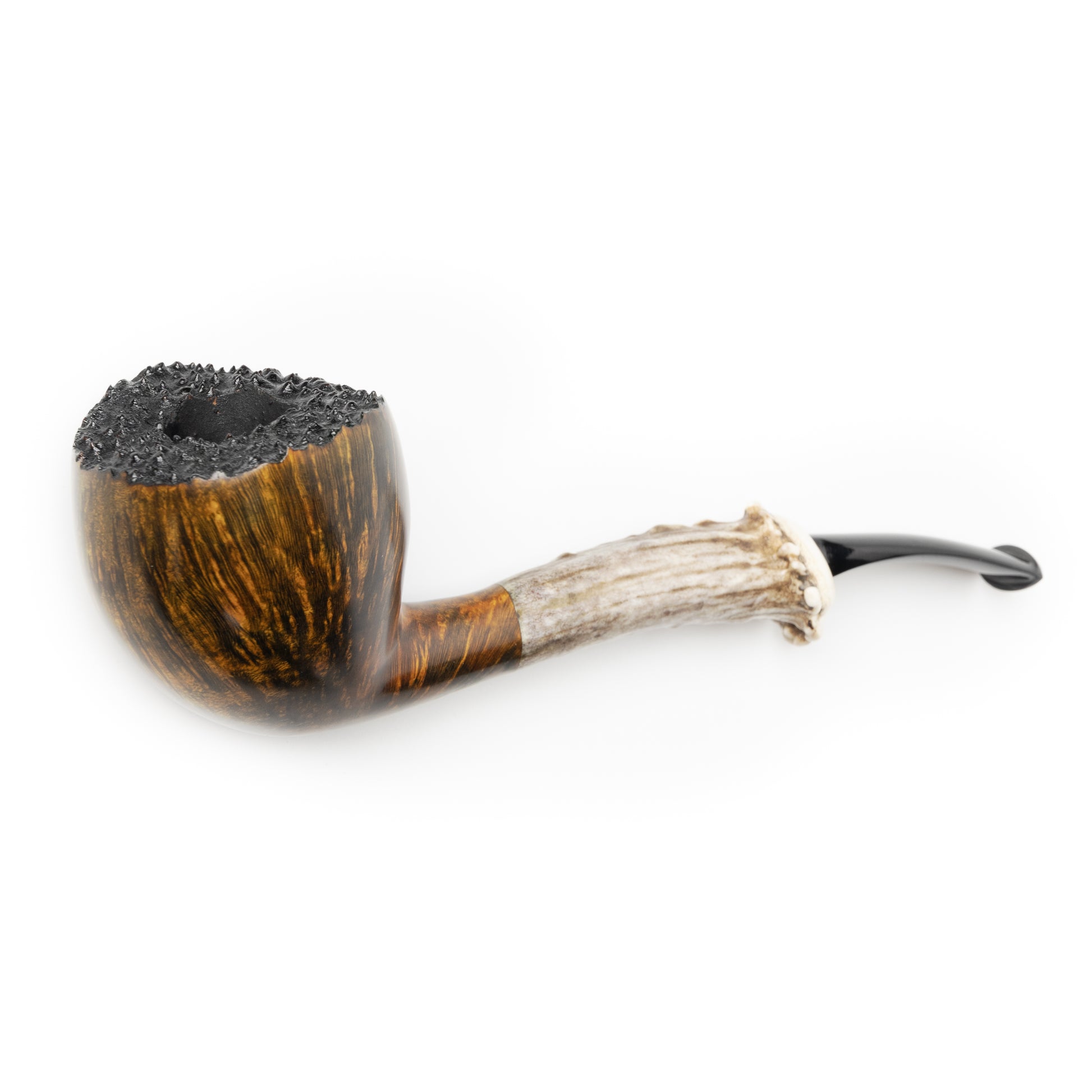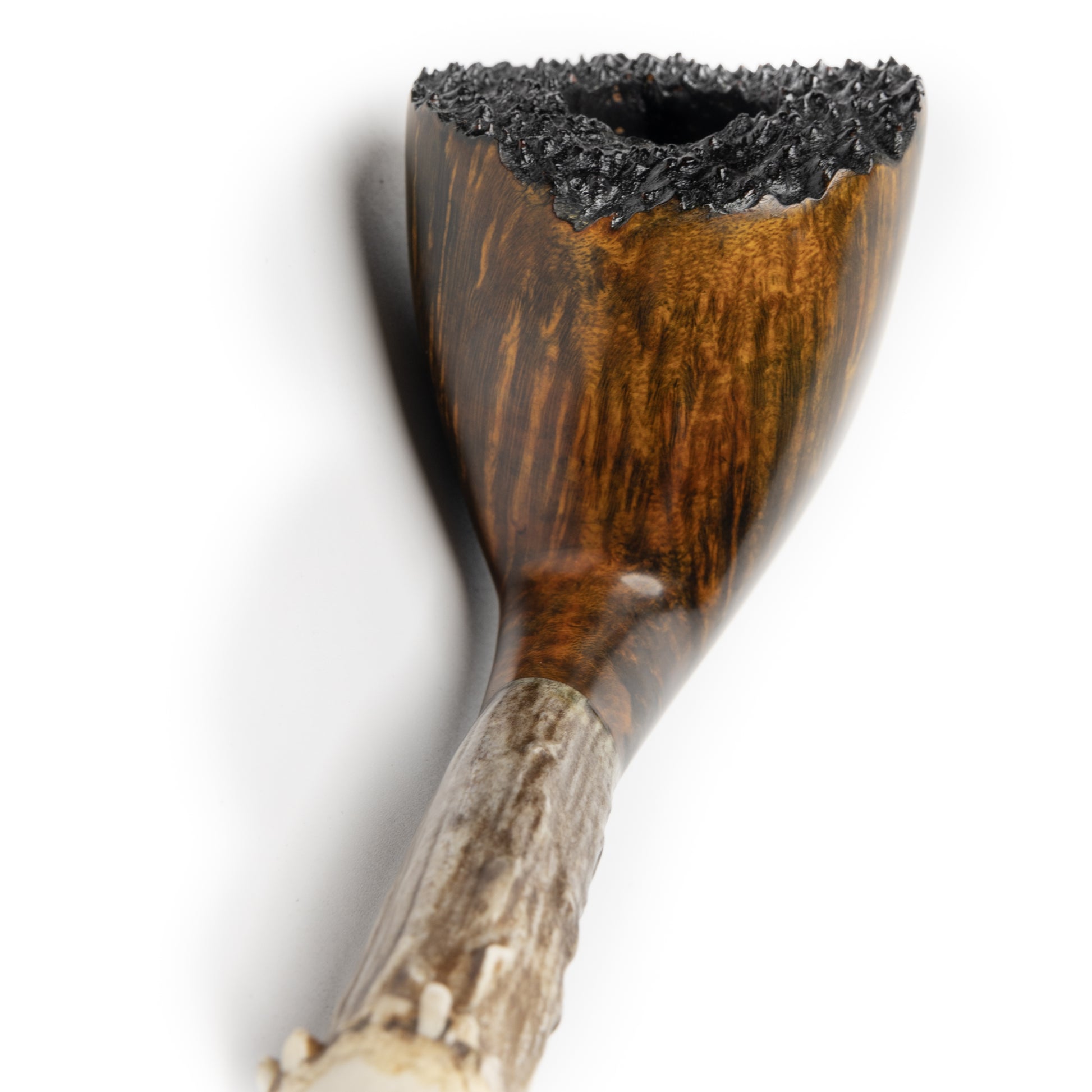 This is a wonderful acorn-ish shape with a deer antler shank. The grain on this pipe is also excellent with a nice contrast stain.