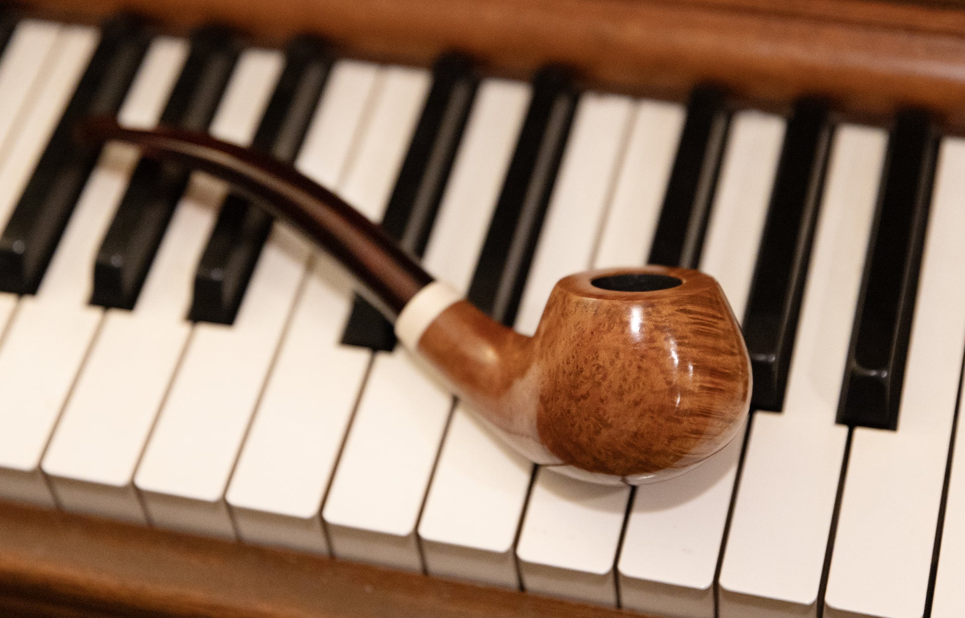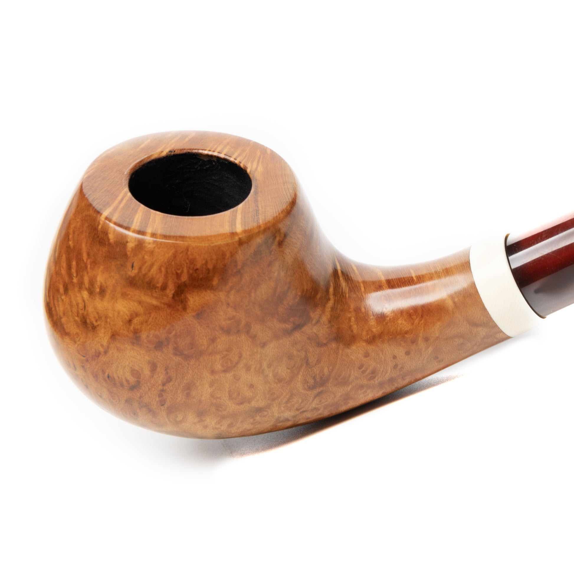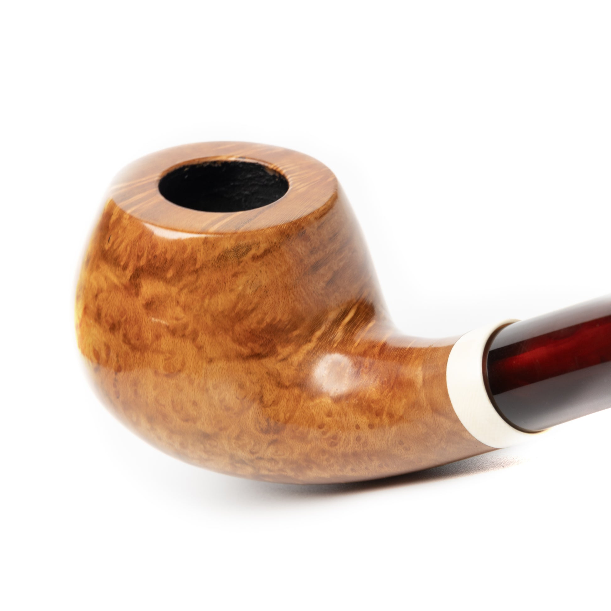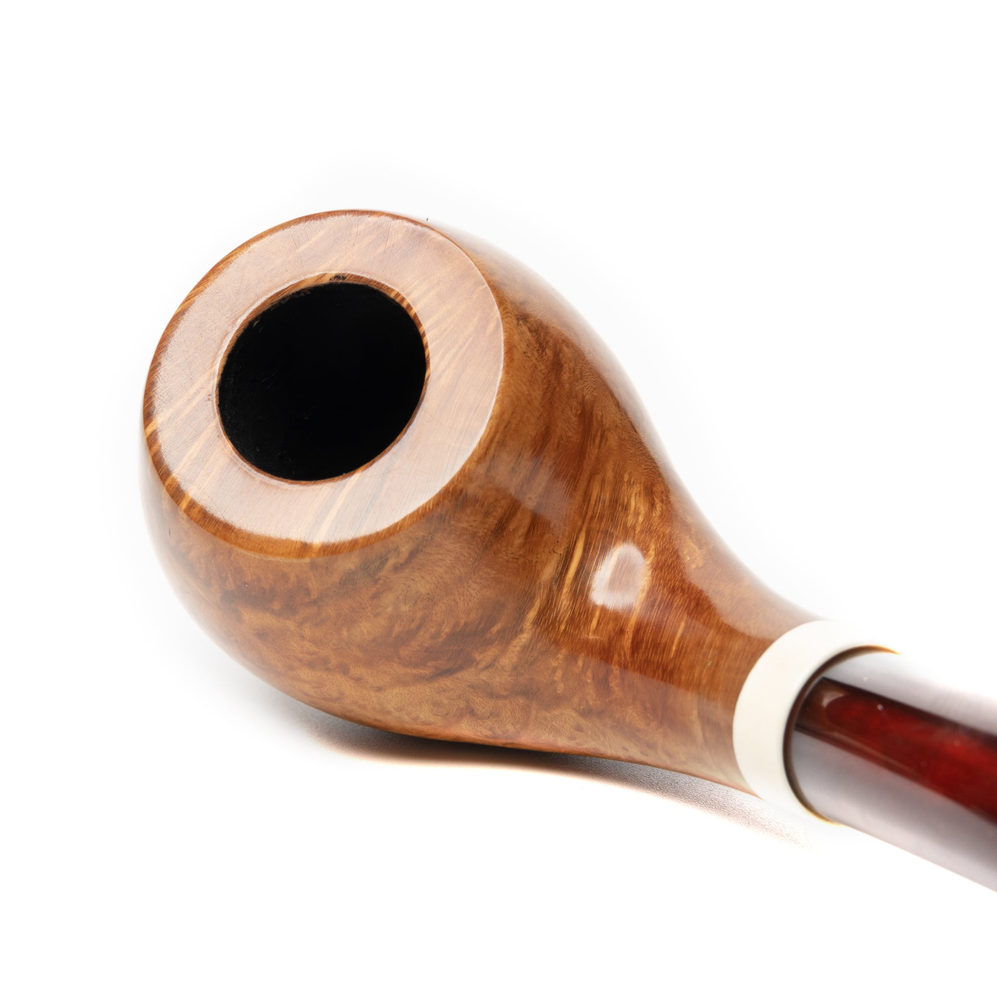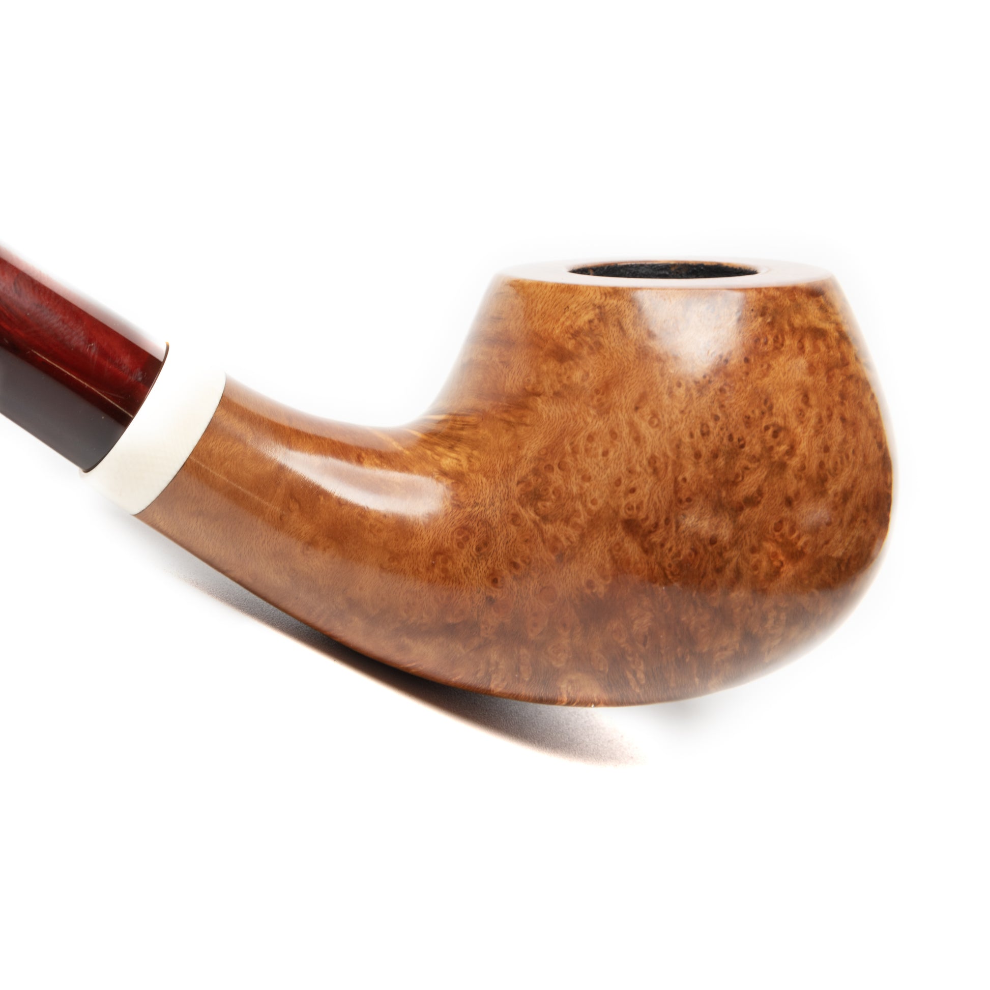 A nice long author pipe with mammoth ivory accent and an amber acrylic stem.