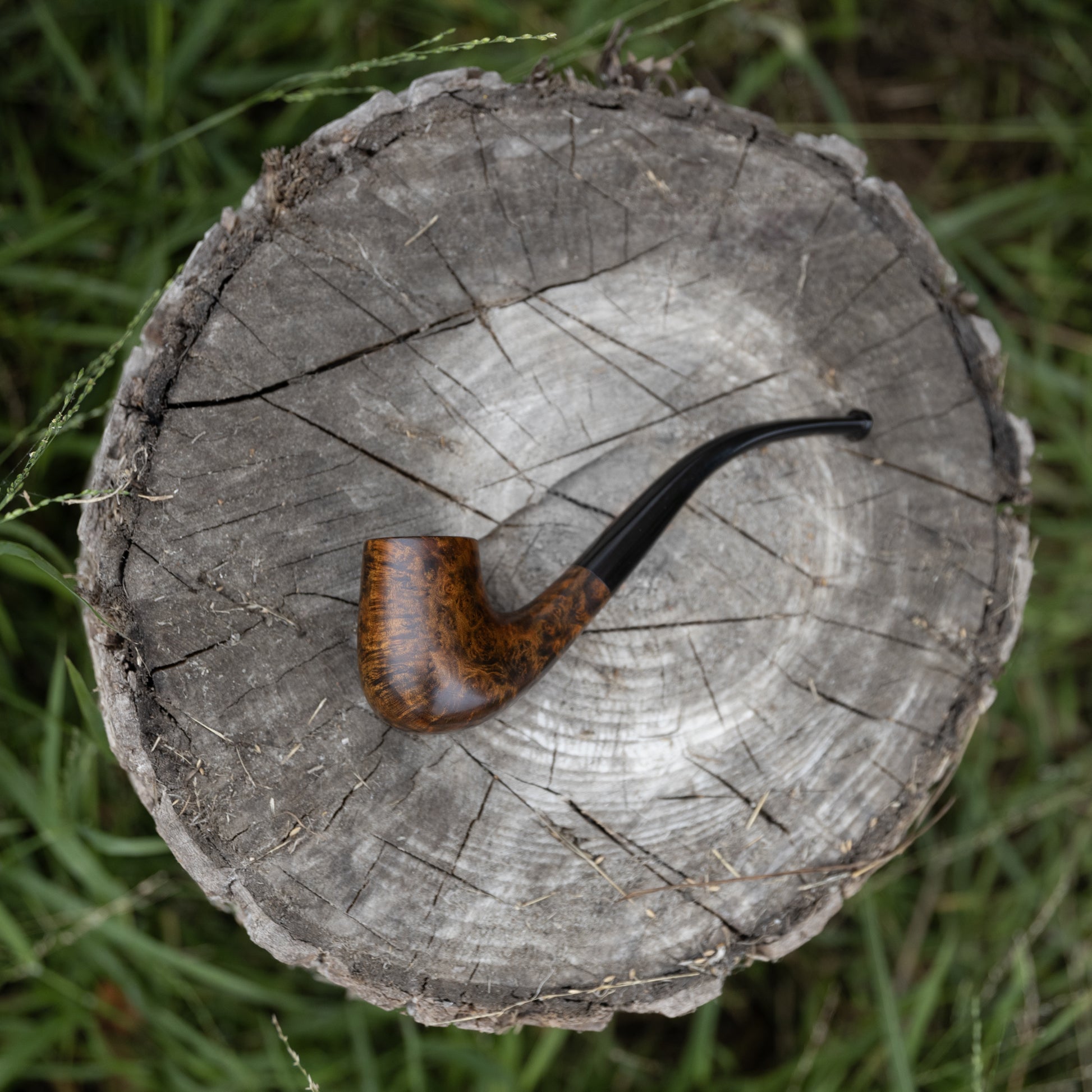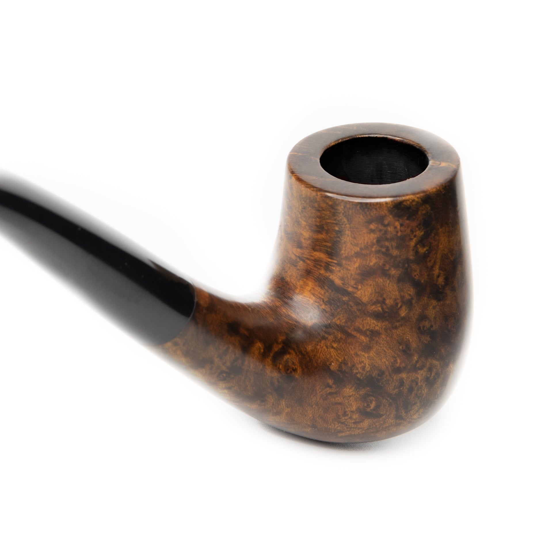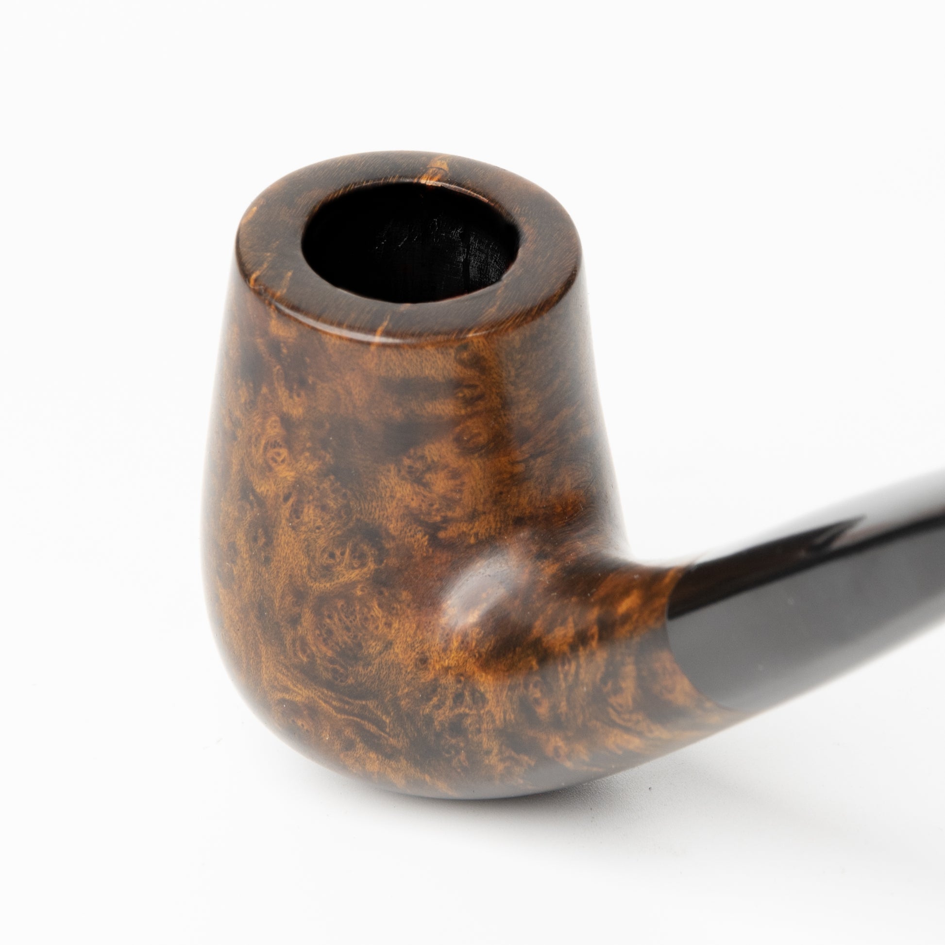 Classic Shape and simple pipe. The flattened oval shank and stem gives some character to this modest presentation.