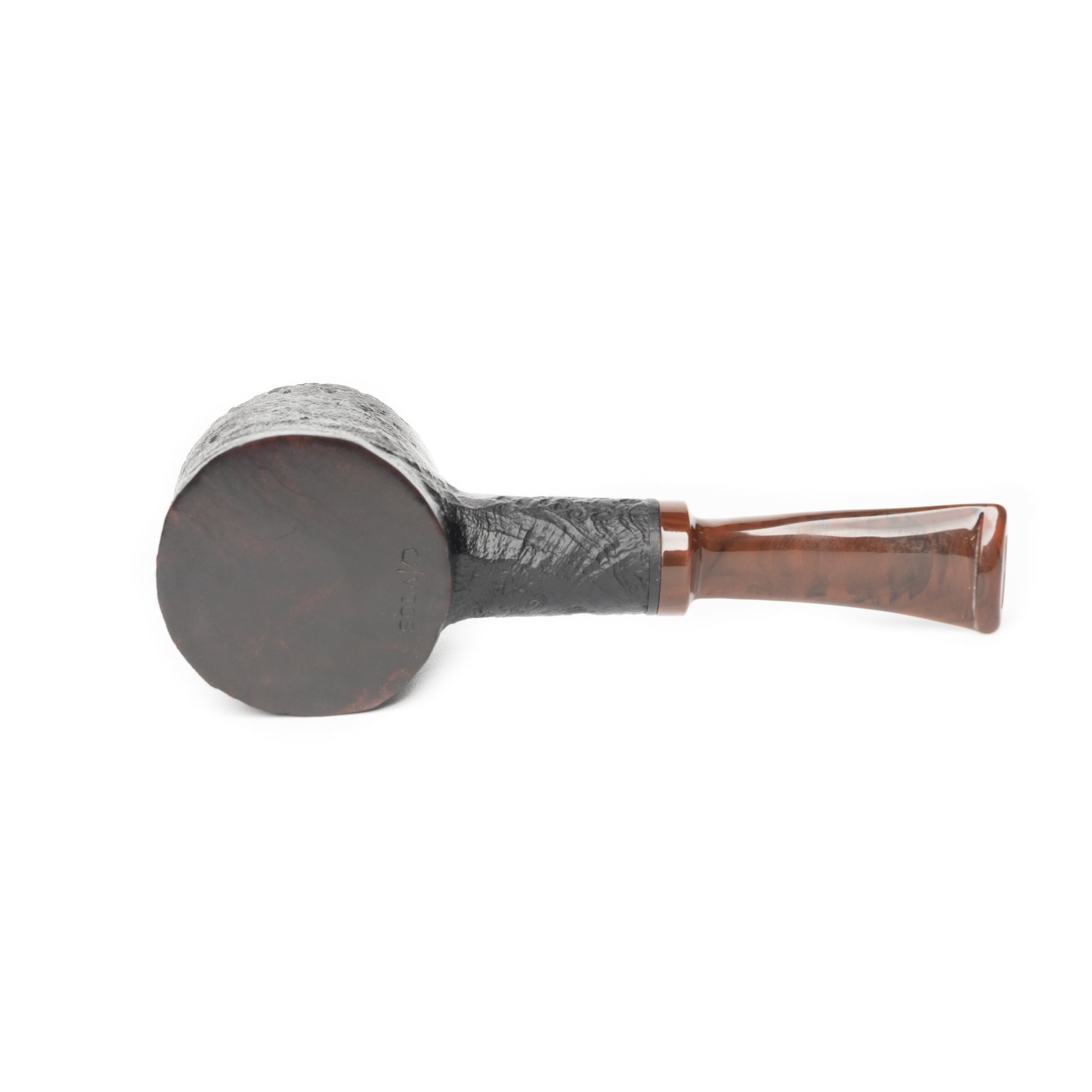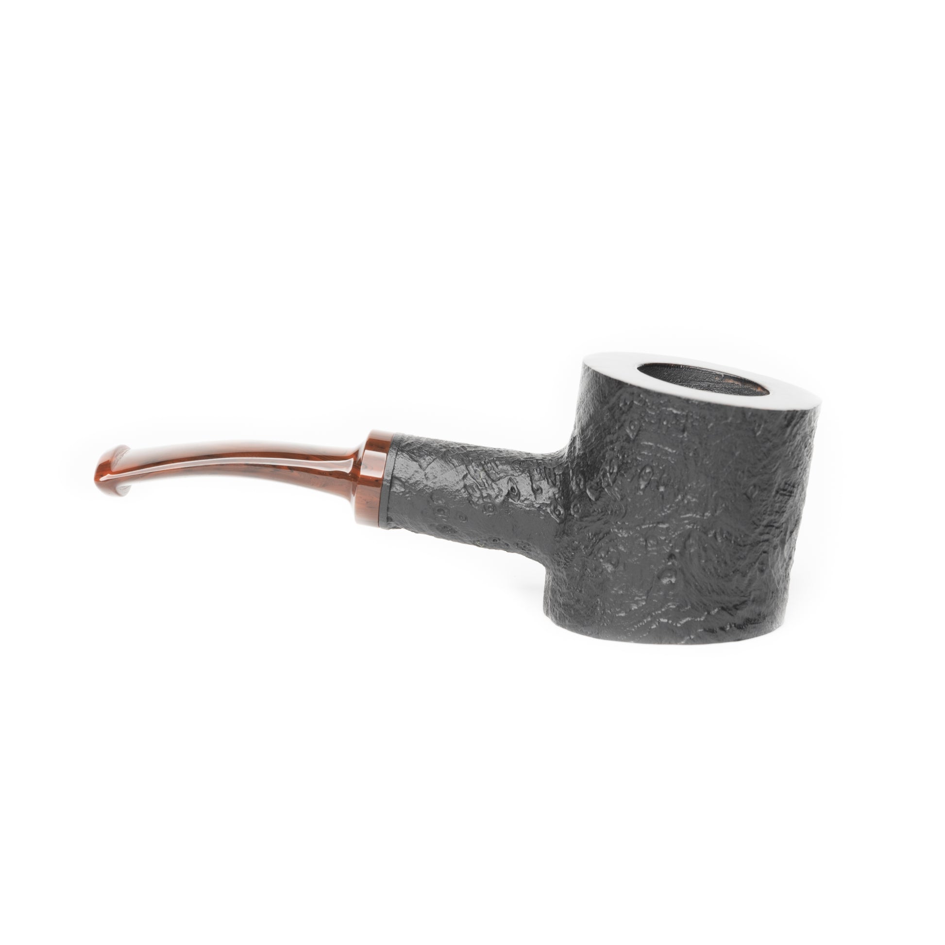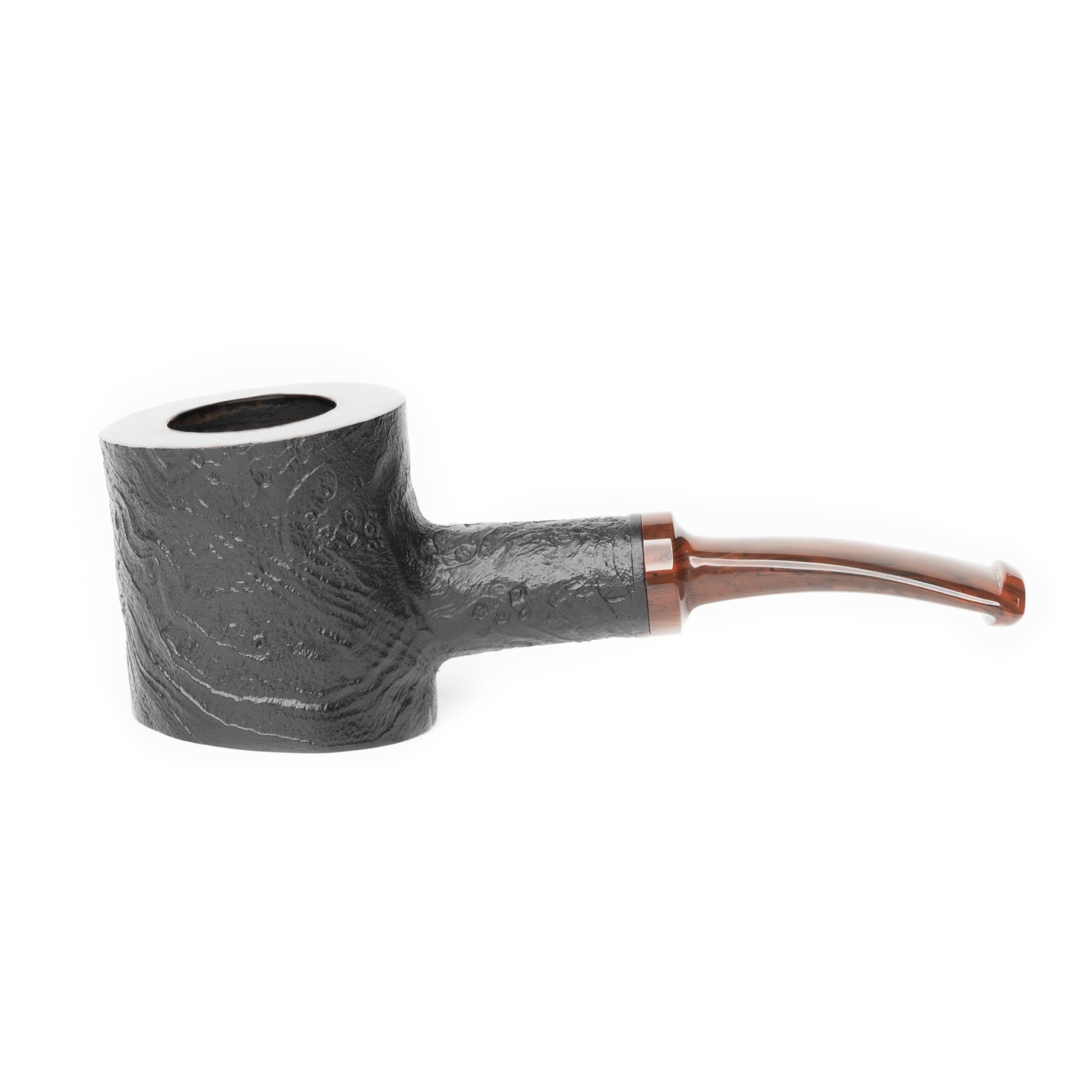 This cherrywood shape is a comfy and compact companion. Great for a winter smoke around a campfire. Subtle black sandblasting on the sides and shank, complimented with smooth contrast stain top and bottom.